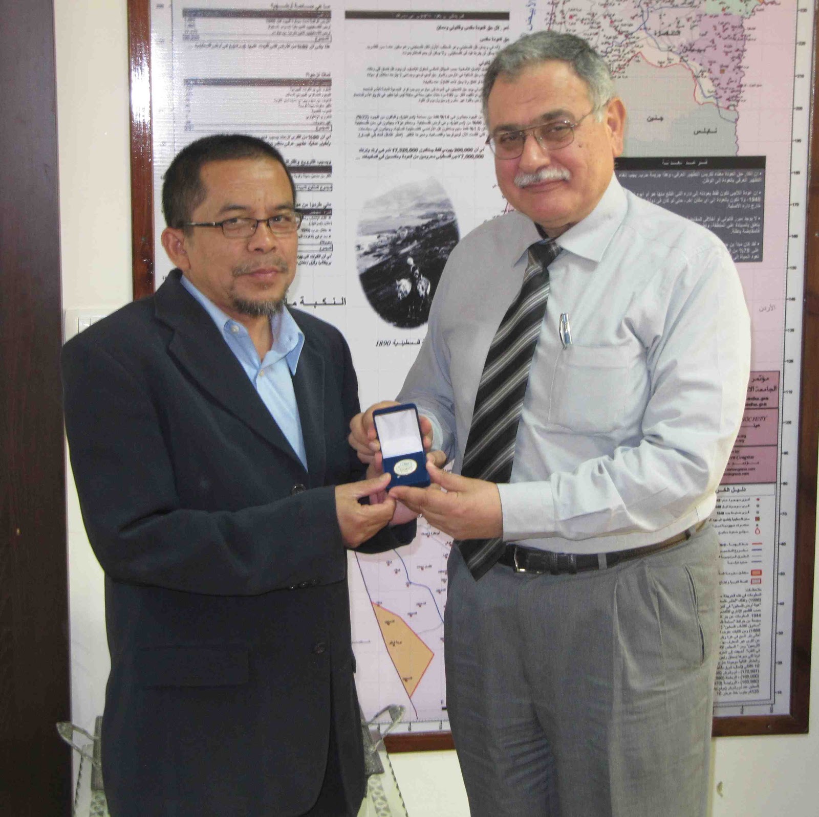 Peserta misi A2G15-AM yang telah kembali ke Malaysia, ketika di Gaza turut mengadakan kunjungan ke IUG dan disambut oleh Presiden dan Pentadbiran Islamic University Gaza. Sebelum ini, Aqsa Syarif telah menghulurkan beberapa sumbangan untuk pelajar-pelajar di IUG dan selain dari kunjungan untuk merapatkan hubungan yang sedia terjalin. Presiden IUG, Prof Dr Kamalain turut berterima kasih kepada Aqsa Syarif di atas tawaran 3 biasiswa peringkat PhD untuk bakal kakitangan IUG belajar di Malaysia khususnya di UTM. Salah seorang peserta misi A2G15-AM adalah Prof Madya Dr Mohd Zin yang turut menyampaikan cenderahati bagi pihak Jabatan Seni Bina dan Fakulti Alam Bina kepada Dr Kamalain dan Dr Ahmed Muhaisen iaitu staf IUG di Jabatan Senibina.